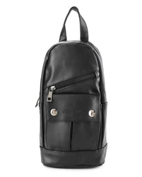 - Distressed Leather Zipper Pocket Slingbag - Black
