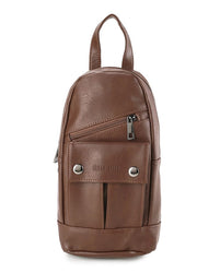 - Distressed Leather Commuter Slingbag - Dark Brown
