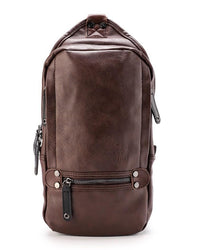 - Distressed Leather Pocket Slingbag - Dark Brown