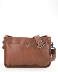 - Distressed Leather Essential Crossbody Bag - Camel