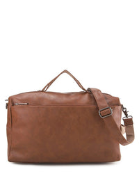 - Distressed Leather Carry Duffel Bag - Camel