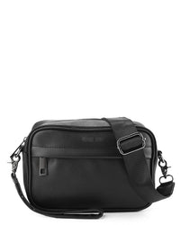 - Distressed Leather Zipper Crossbody Bag - Brown