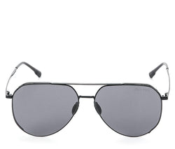 - Polarized Stainless Frame Napoli Hexagon Aviator Sunglasses - Black Black